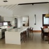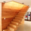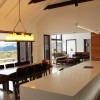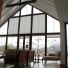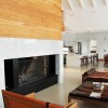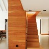 Techo de chapa prepintada negra sobre estructura de madera de Oregón, revestimiento exterior en placas de Kopak surfaces simil madera, aberturas de pvc foliados con DVH.